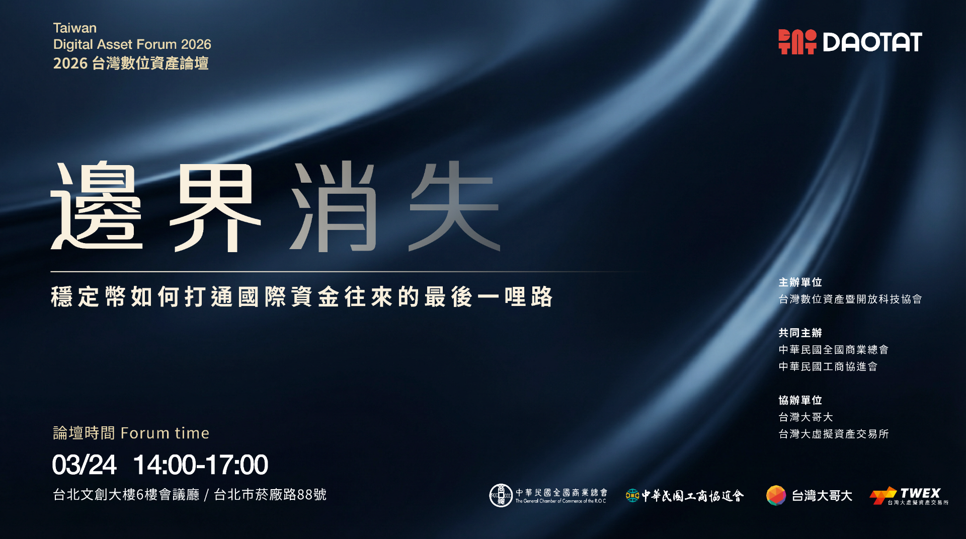 在全球金融科技與數位經濟迅速演進的時代,數位資產已成為金融創新與國際資本市場的新核心。為引領台灣在數位金融領域的對話與發展,由台灣數位資產暨開放科技協會(DAOTAT)主辦的「台灣數位資產論壇 Taiwan Digital Asset Forum」,於2025年10月23日(星期四)13:00至16:40在信義學堂(台北市信義路五段100號B1)盛大登場。